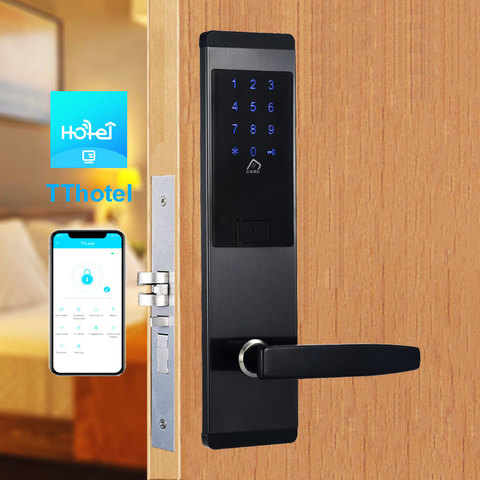 Acceso seguro a la habitación Aleación de zinc Aplicación TTLOCK TT Hotel Mobile y RFID Sistema de bloqueo de puerta de hotel Sistema de entrada de bloqueo sin llave de hotel
